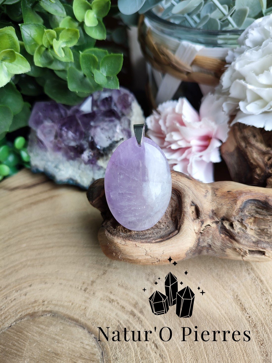 Pendentif pierre plate de forme ovale, en améthyste de qualité AA.