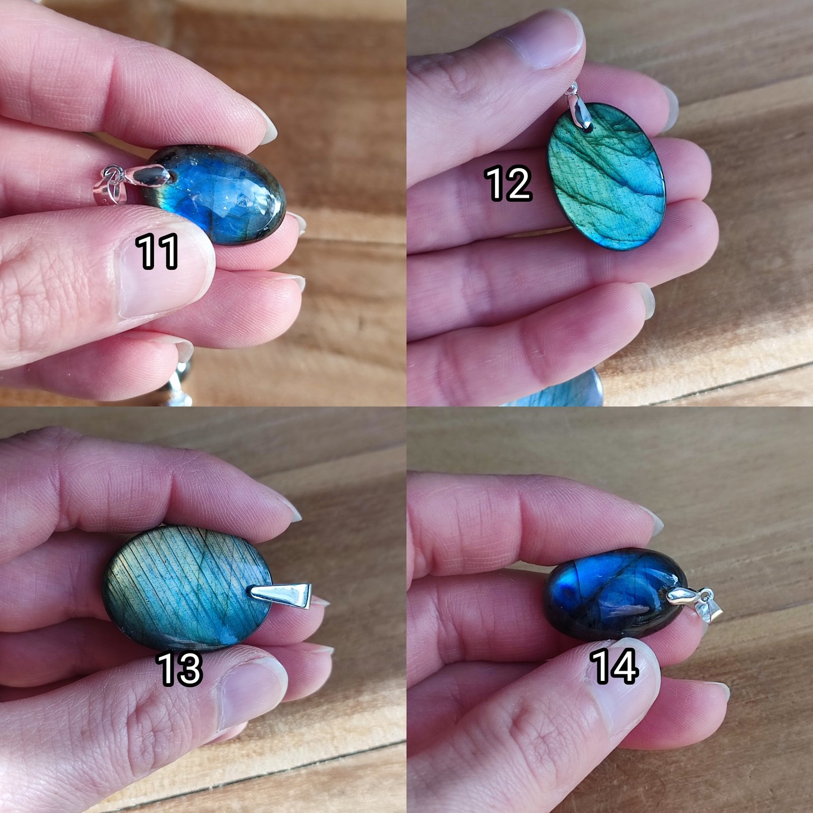 Pendentifs en labradorite au choix, en provenance de Madagascar.
